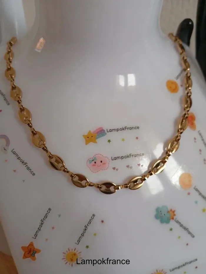 Solde 💝 Collier chaine en grain de café dorée magnifique en acier - photo numéro 3