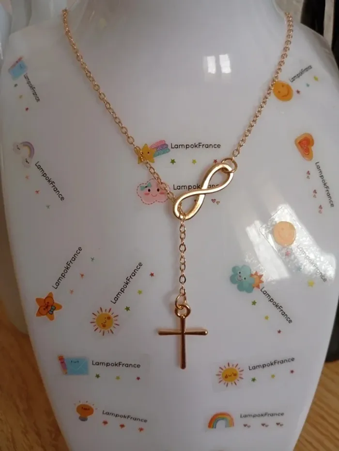 Solde 💝 Collier en acier pendant doré croix religieuse signe d'infini - photo numéro 1