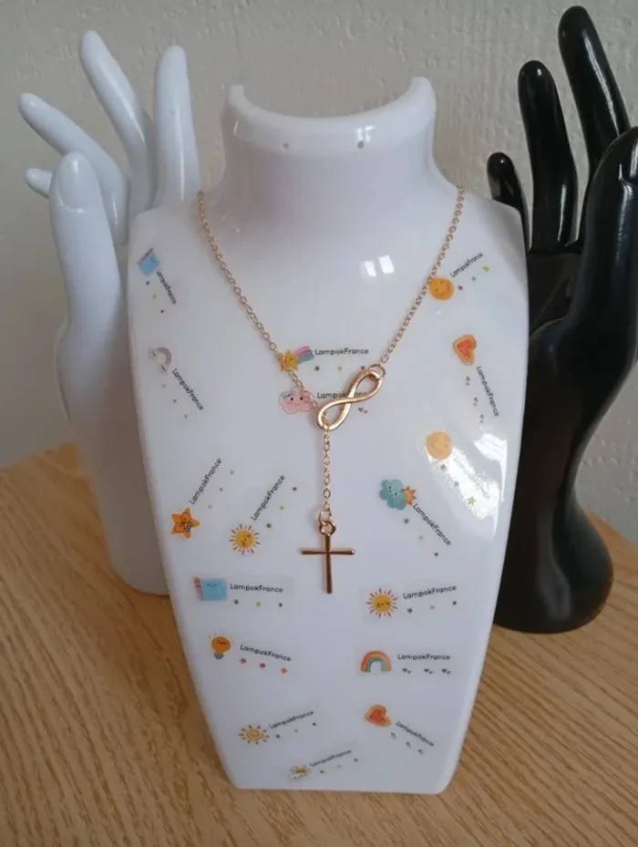 Solde 💝 Collier en acier pendant doré croix religieuse signe d'infini