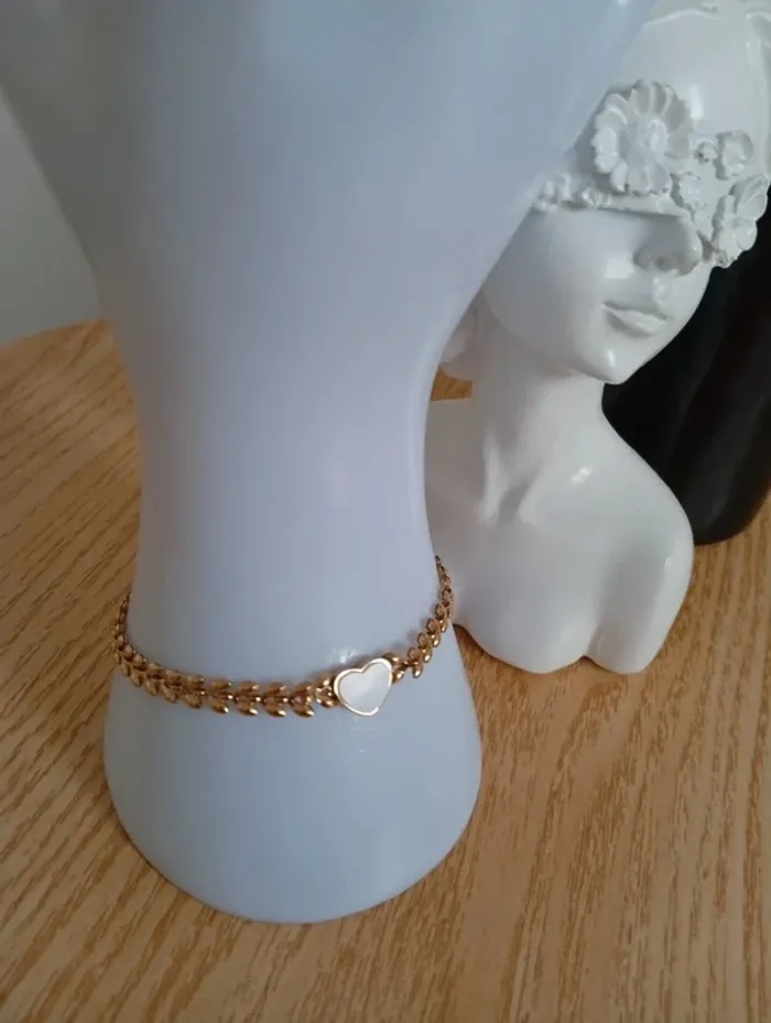 Bracelet en acier inoxydable tressé pendtof coeur blanx chaine dorée - photo numéro 1