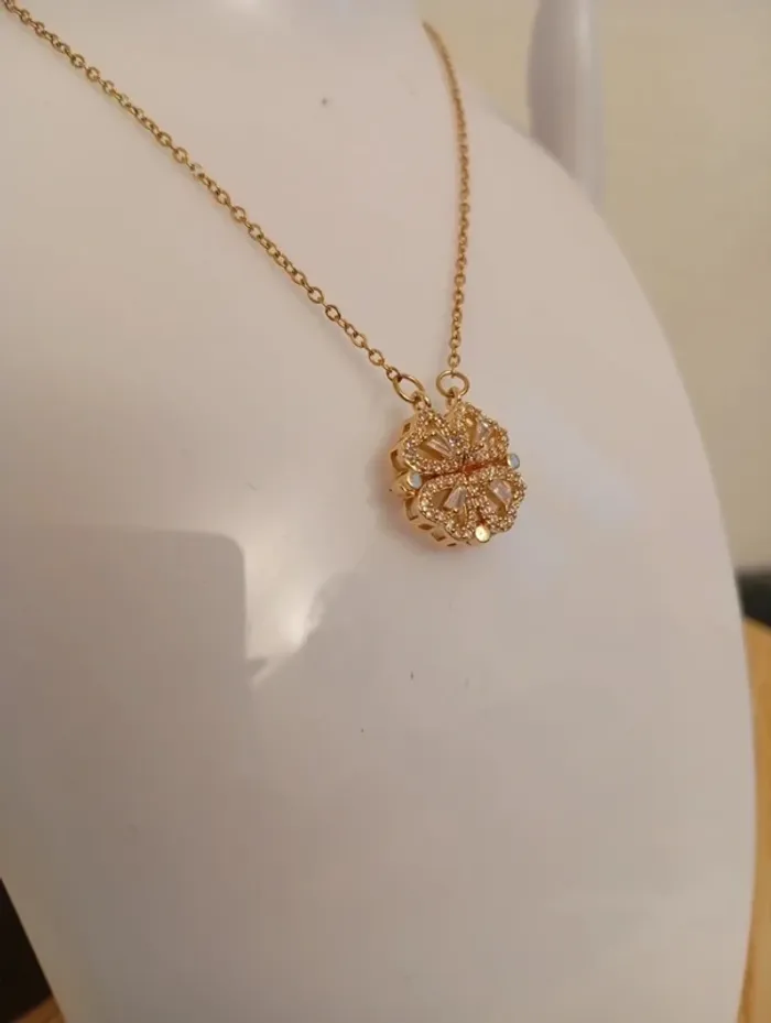 Collier trèfle 4 coeurs en acier inoxydable magnifique collier chic bohème tendance - photo numéro 1