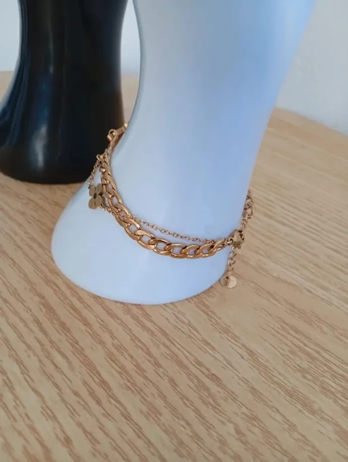 Solde 💝 Bracelet double trèfle 4 feuilles nacre fleurs  bohèmes chic tendance hippie - photo numéro 3