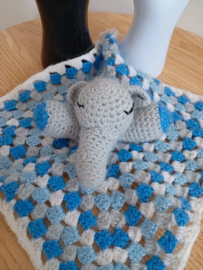 Doudou okay éléphant en coton fait main - photo numéro 1