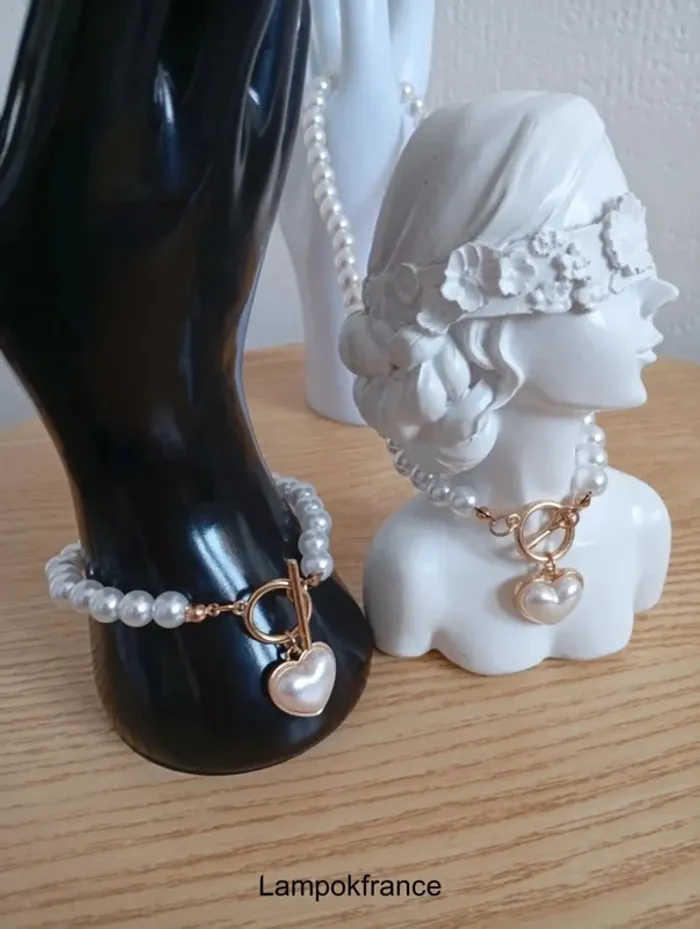 Ensemble collier en perles blanches d'amour coeur avec bracelet - photo numéro 1