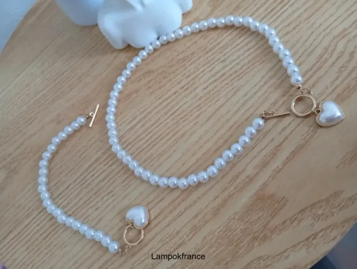 Ensemble collier en perles blanches d'amour coeur avec bracelet