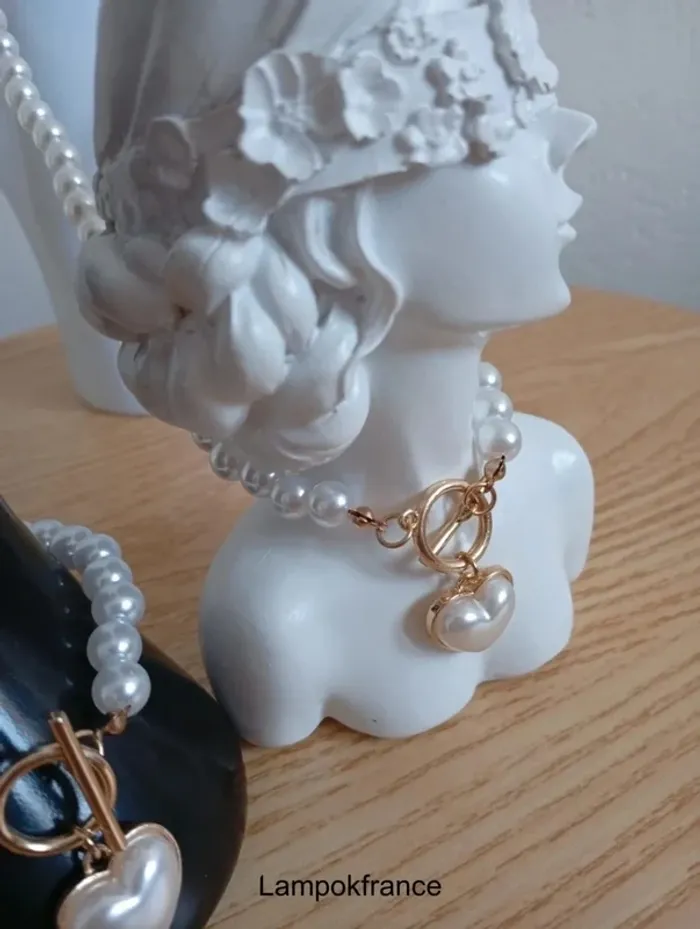 Ensemble collier en perles blanches d'amour coeur avec bracelet - photo numéro 3