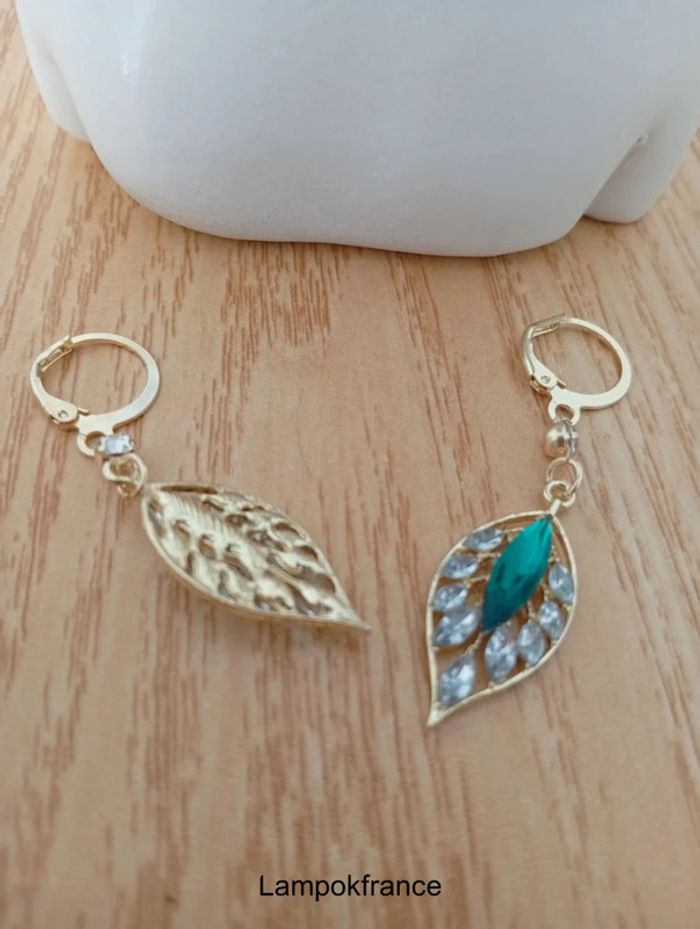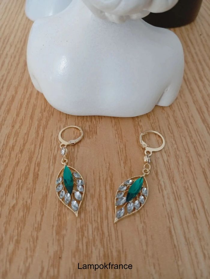 Boucles d'oreilles fantaisie à cerceau en feuille verte femme - photo numéro 2