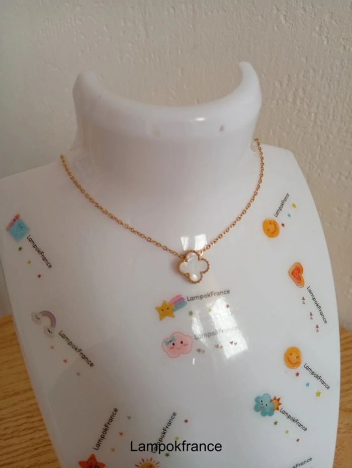 Solde 💝 Collier bohémien trèfle à quatre feuilles couleurs or en acier inoxydable - photo numéro 3