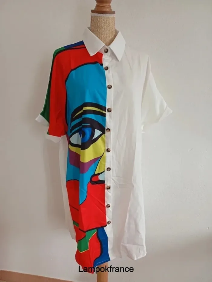 Solde 💝 Blouse imprimée florale longue chemise oversize 38-42 vintage style motif artistique - photo numéro 2