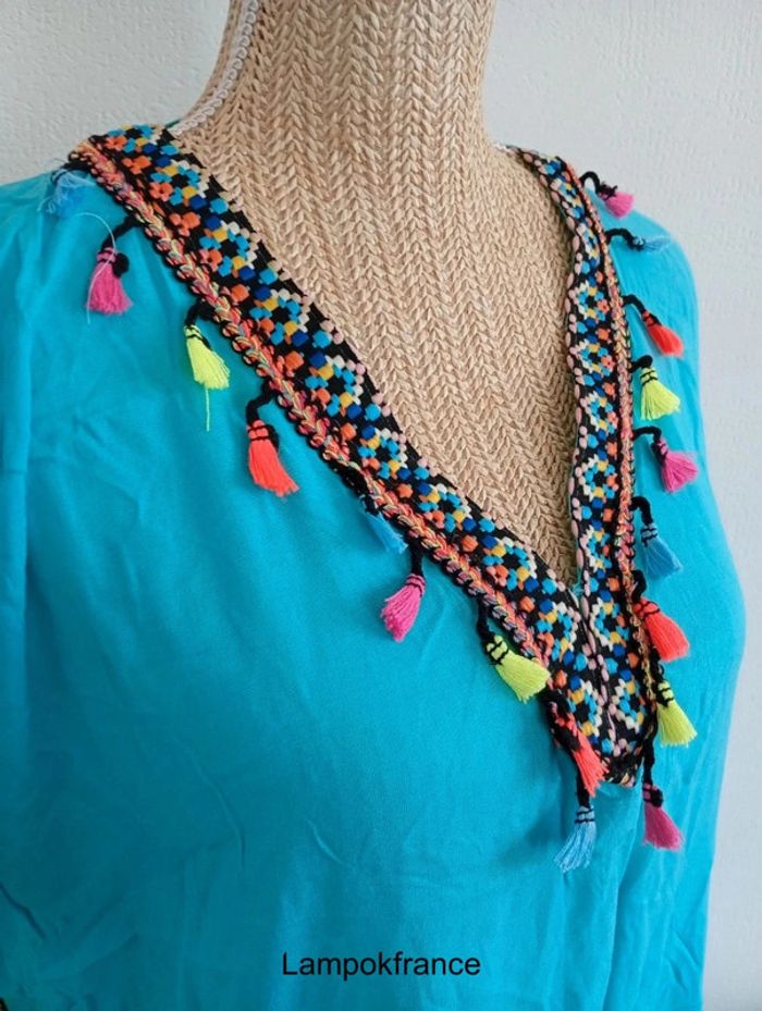 Tunique décontractée bleu ciel oriental style maghrébin caftan événement mariage - photo numéro 2
