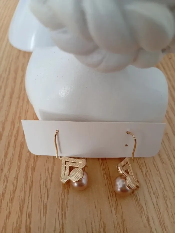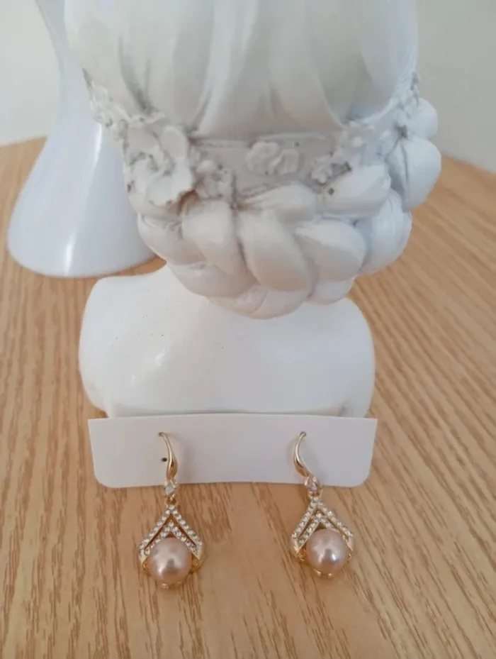 Boucles d'oreilles fantaisie femme raffinée boucle à perle beige strass doré