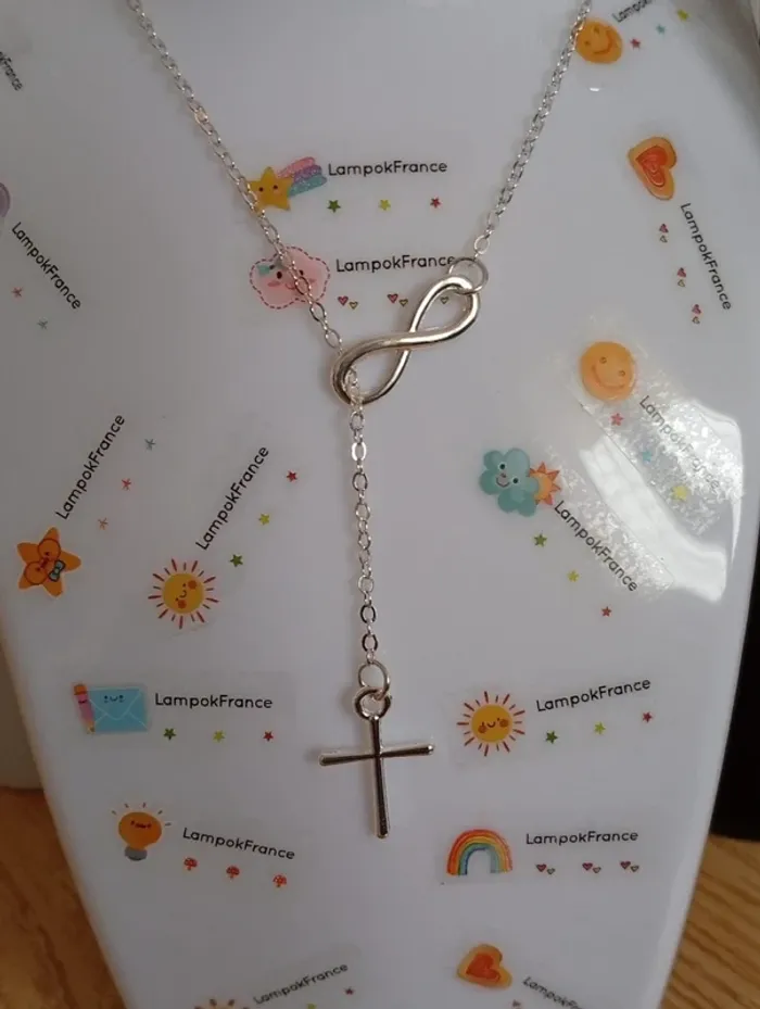Solde 💝 Collier pendant croix religieuse avec signe de l'infini en acier inoxydable - photo numéro 1