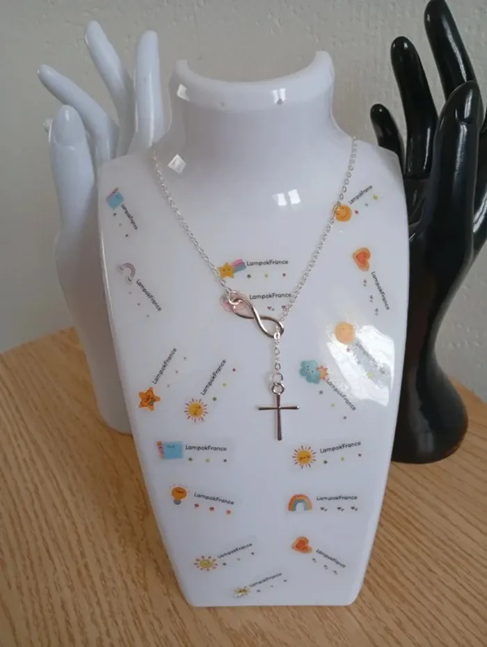 Solde 💝 Collier pendant croix religieuse avec signe de l'infini en acier inoxydable - photo numéro 3