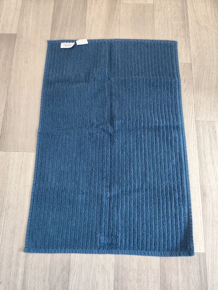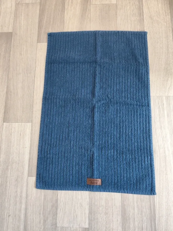 Vends une petite serviette de toilette Avène de couleur bleue marine en très bon état.