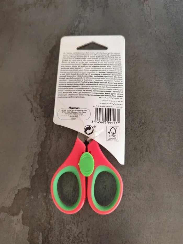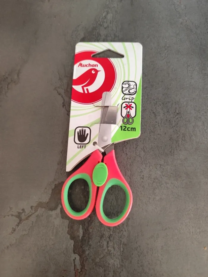 Vends une paire de ciseaux pour gaucher de marque Auchan encore emballé erreur d'achat.