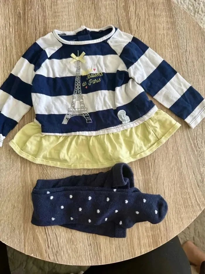 Robe fille bleu marine bon baisers de paris 👸🏼 avec un collant bleu marine motif cœur Taille 6 mois 67 cm Marque vertbaudet très bon état porté quelque fois sans tache ni trous Lot possible sur mon dressing #giuliafille6mois #ensemble6moisfille #robe6mois #robe #6moisfille #6mois #fille6mois