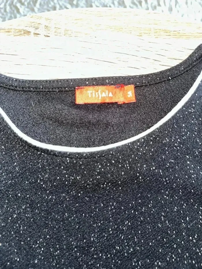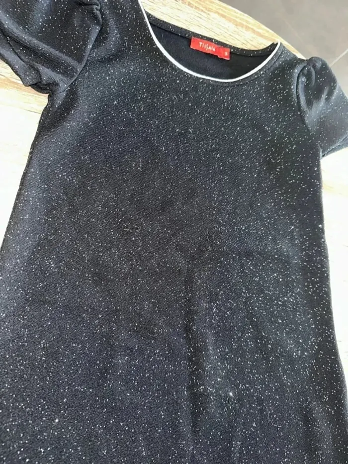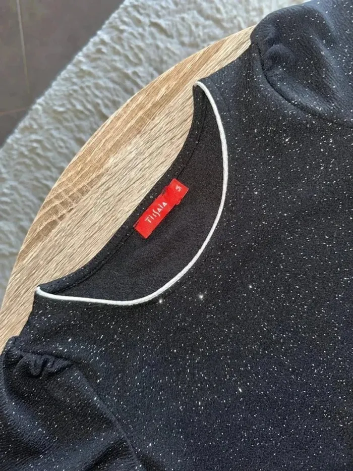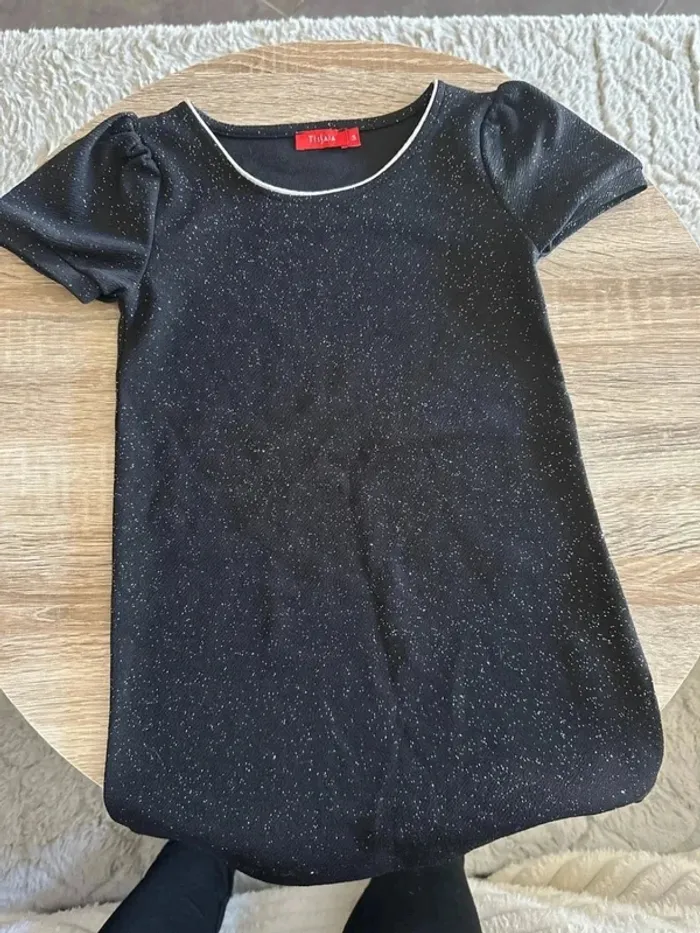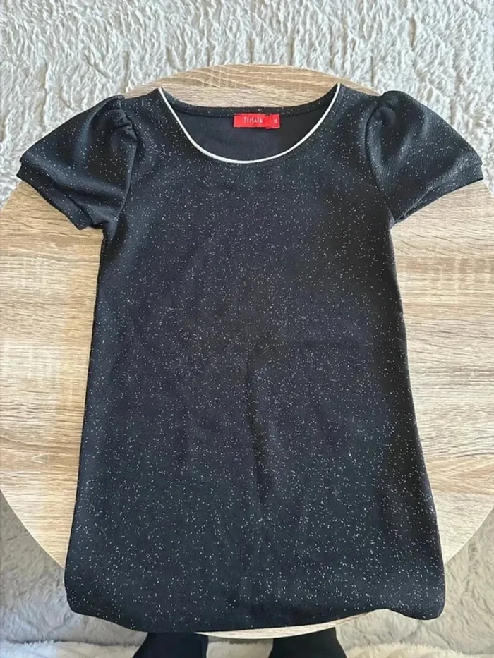 T-shirt noir à paillette manche courte fille col rond 5 ans noir pailletté Parfait état Marque tissaia Lot possible sur mon dressing #giuliafille5ans