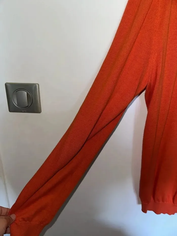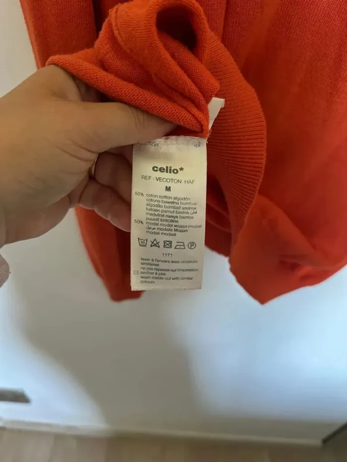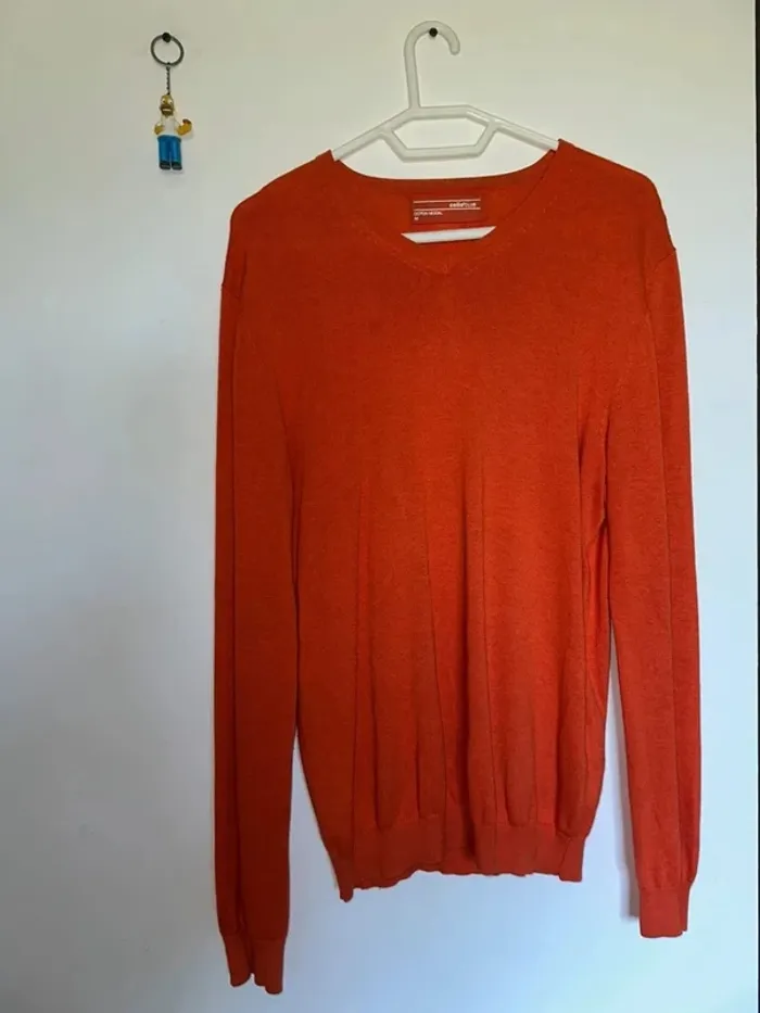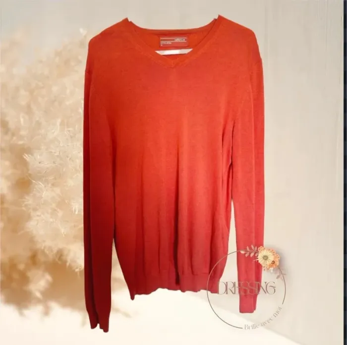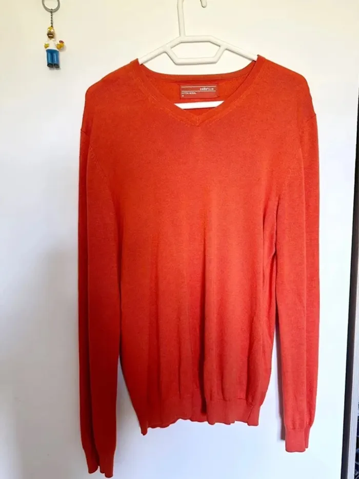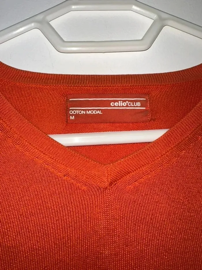 Pull fin orange Col en V Taille M Marque Celio Très bon état Lot possible sur mon dressing #leandrohommeM