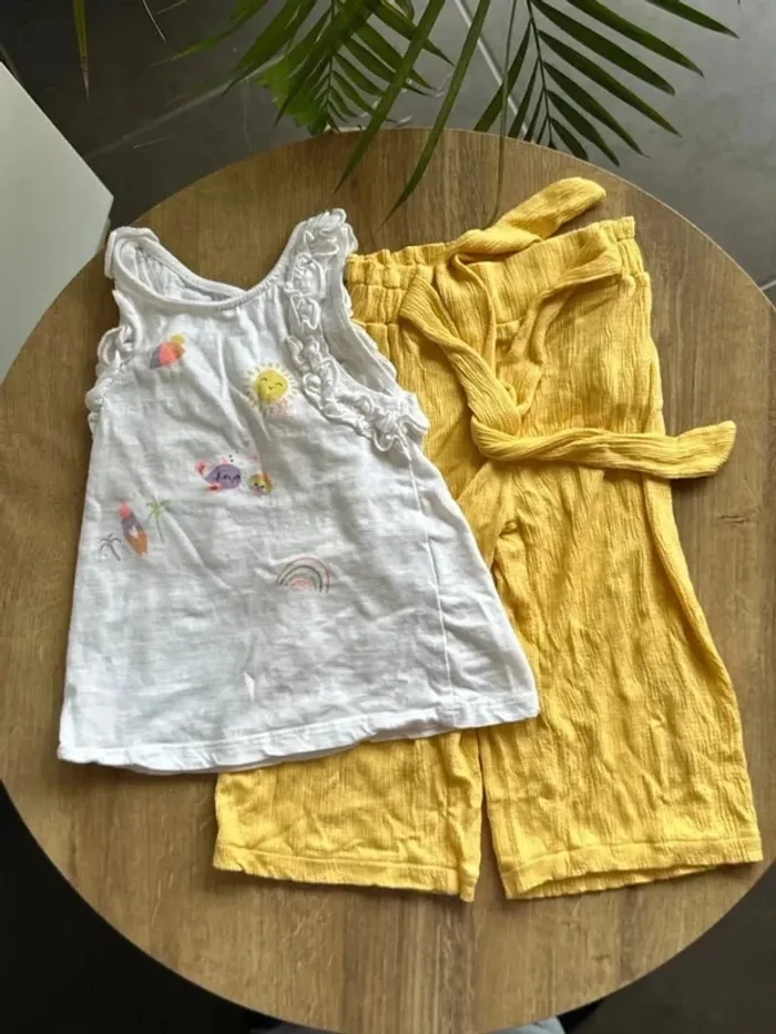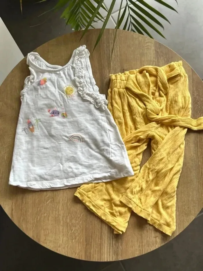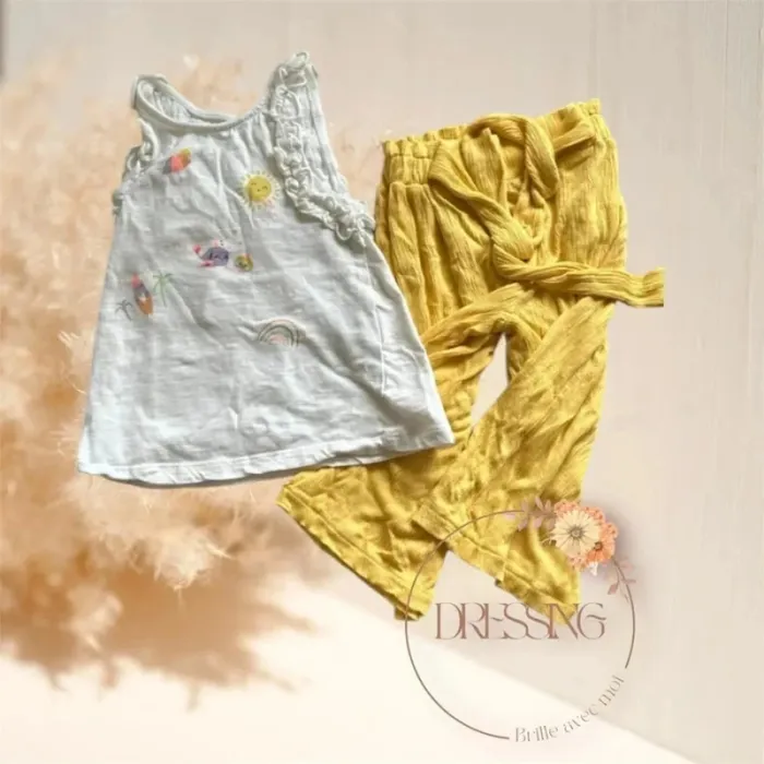 Ensemble fille 4 ans Sarouel + débardeur Très bon état pas de tache ni trous peu porté Lot possible sur mon dressing #giulia_fille_4ans