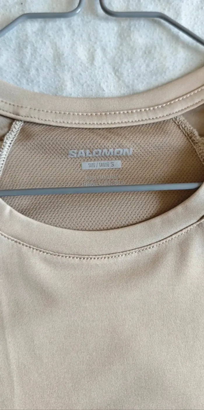 T-shirt Salomon Couleur Beige Taille S Tissu Respirant Parfait pour le sport Très bon état Porté quelques fois avec un petit défaut dans les coutures voir photo sinon parfait.