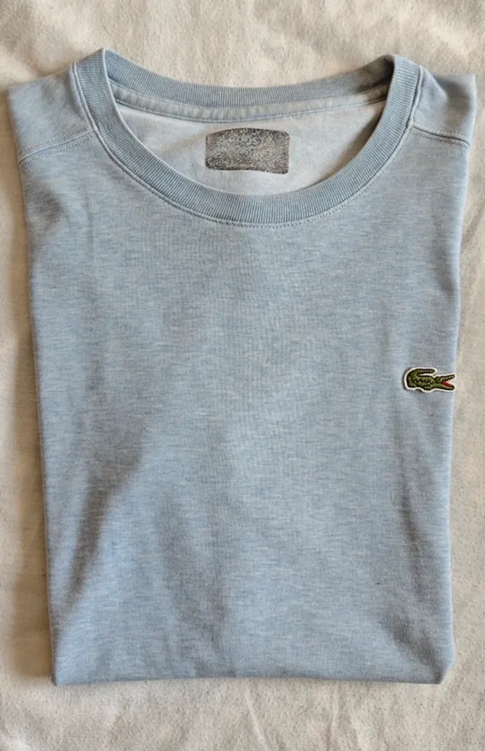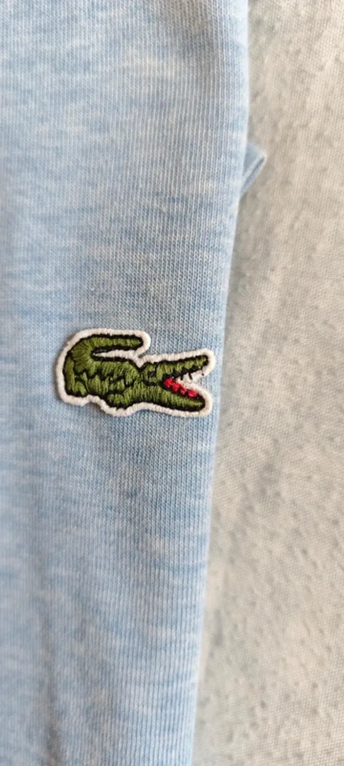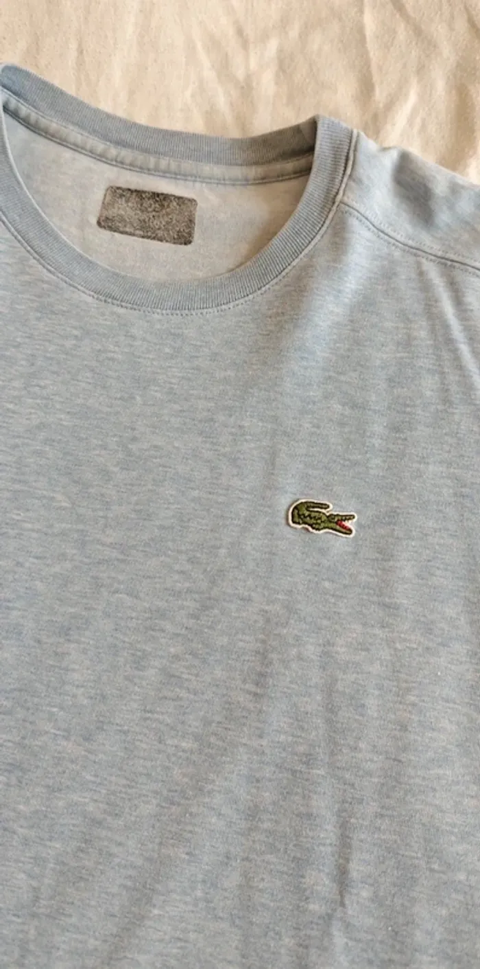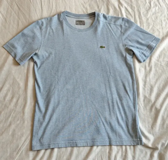 T-shirt Lacoste Couleur Bleu Clair Bon état un petit défaut sur le t-shirt voir photo et taille effacer cause lavage mais encore bon état et encore beau. Si vous avez des questions n'hésitez pas.