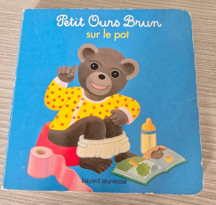 Livre petit ours brun sur le pot