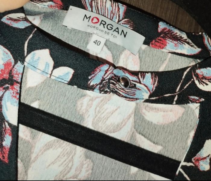 Robe noire, motifs fleurs. Morgan. Taille 40. Neuve. Avec ras de cou