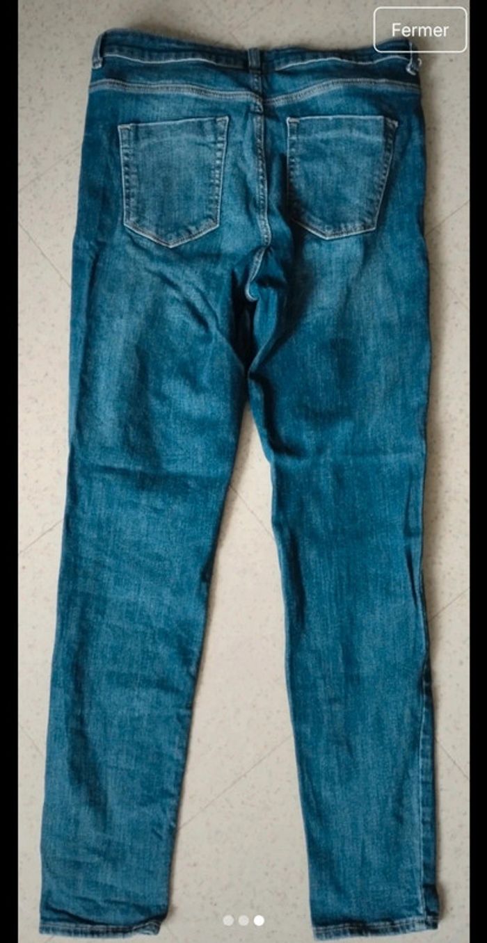 Jean skinny taille 40, taille haute . Très bon état. Effet troué.