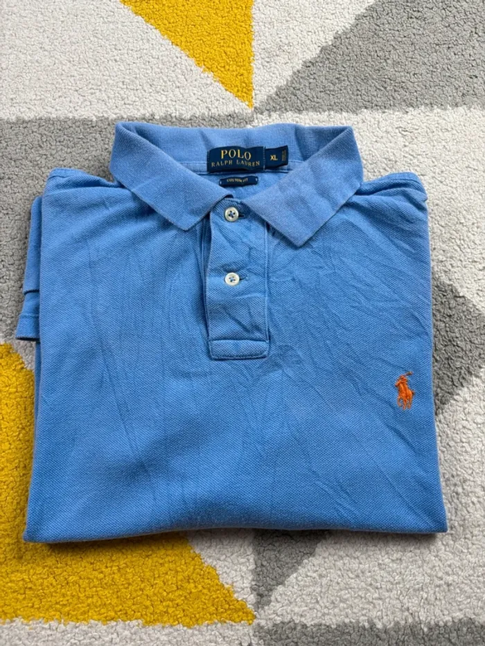 🎁 -5% de réduction pour les abonné(e)s🎁 💸 -10% dès deux articles achetés! 💸 ✅: Très bon état 🎨 : Bleu clair 🧵: 100% coton ​📏​: XL Réf.: P01082025 #polo #ralphlauren #xlarge