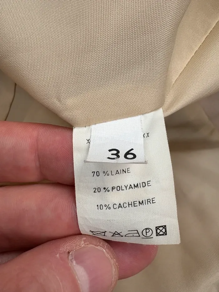 🎁 -5% de réduction pour les abonné(e)s🎁 💸 -10% dès deux articles achetés! 💸 ✅: Très bon état 🎨 : Beige 🧵: 70% laine, 20% polyamide, 10% cachemire ​📏​: S / 36 / 8 Réf.: CD27082025 #manteau #longmanteau #damart #laine #small