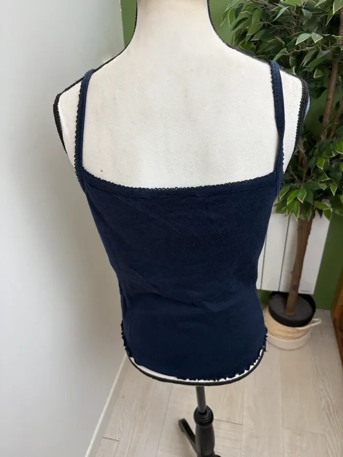 🎁 SOLDES 🎁 💸 -10% dès deux articles achetés! 💸 ✅: Très bon état 🎨 : Bleu marine 🧵: 100% coton ​📏​: M / 38 / 10 Réf.: P04072025 #debardeur #lilybroderie #medium