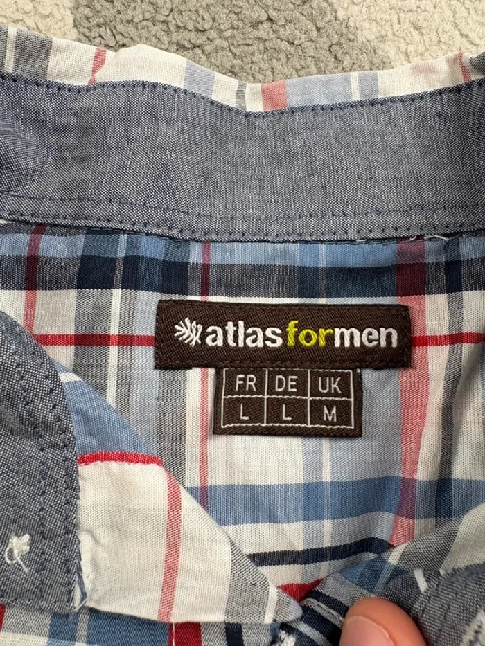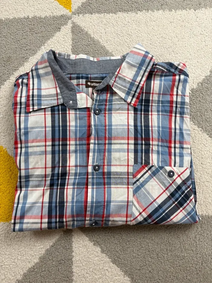 🎁 SOLDES 🎁 💸 -10% dès deux articles achetés! 💸 ✅: Très bon état 🎨 : Bleu, blanc et rouge 🧵: 100% coton ​📏​: L Réf.: P16072025 #chemise #atlasformen #large