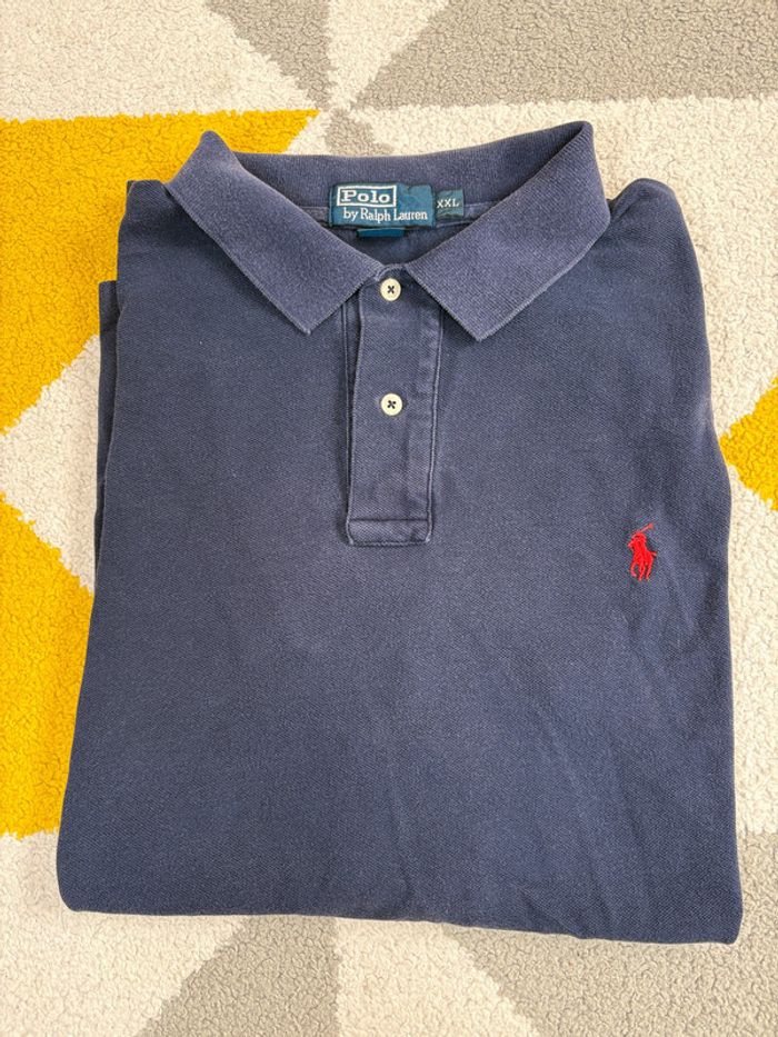 🎁 -5% de réduction pour les abonné(e)s🎁 💸 -10% dès deux articles achetés! 💸 ✅: Bon état (accroc au niveau du dos, voir photos) 🎨 : Bleu marine logo brodé rouge 🧵: 100% coton ​📏​: XXL Réf.: P17062025 #polo #ralphlauren #xxlarge