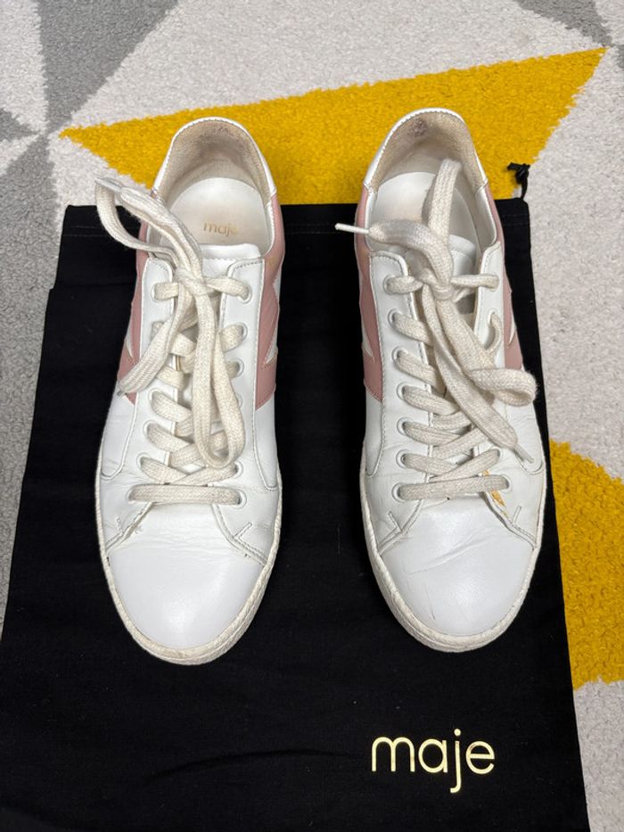 Basket en cuir Maje | Blanc et rose | Taille 39 - photo numéro 1
