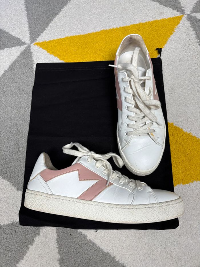 🎁 -5% de réduction pour les abonné(e)s🎁 💸 -10% dès deux articles achetés! 💸 ✅: Très bon état 🎨 : Blanc et rose 🧵: Cuir ​📏​: 39 Réf.: SR07062025 #basket #cuir #maje #taille39