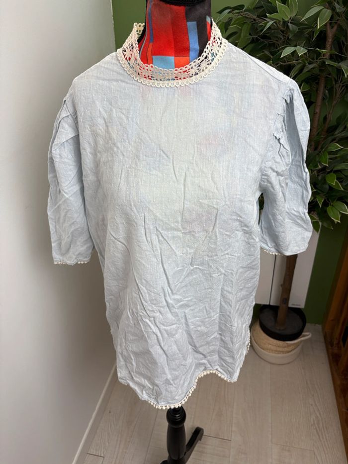 Blouse en lin Zara | Bleu clair | Taille 38 - photo numéro 1