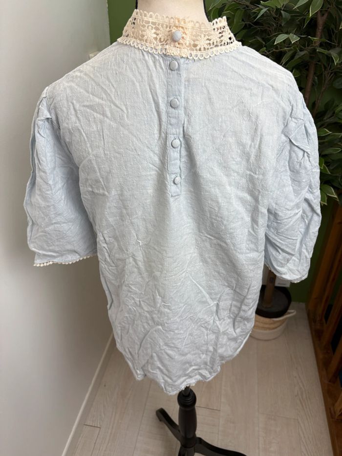 Blouse en lin Zara | Bleu clair | Taille 38 - photo numéro 3
