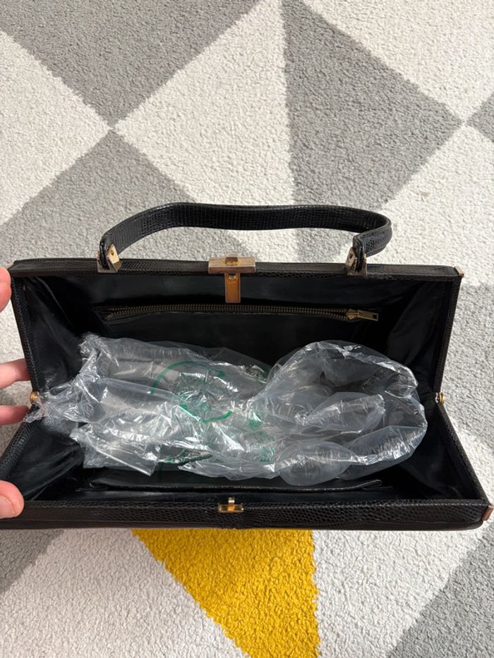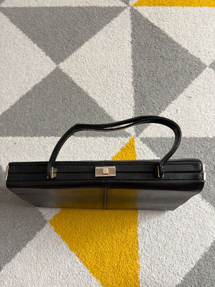 Sac à mains en cuir vintage | Noir | 30 cm X 18,5 cm - photo numéro 5