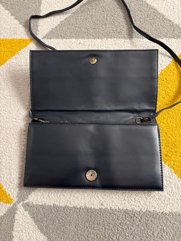Pochette à bandoulière en cuir vintage | Bleu marine | 28 X 15 cm - photo numéro 2