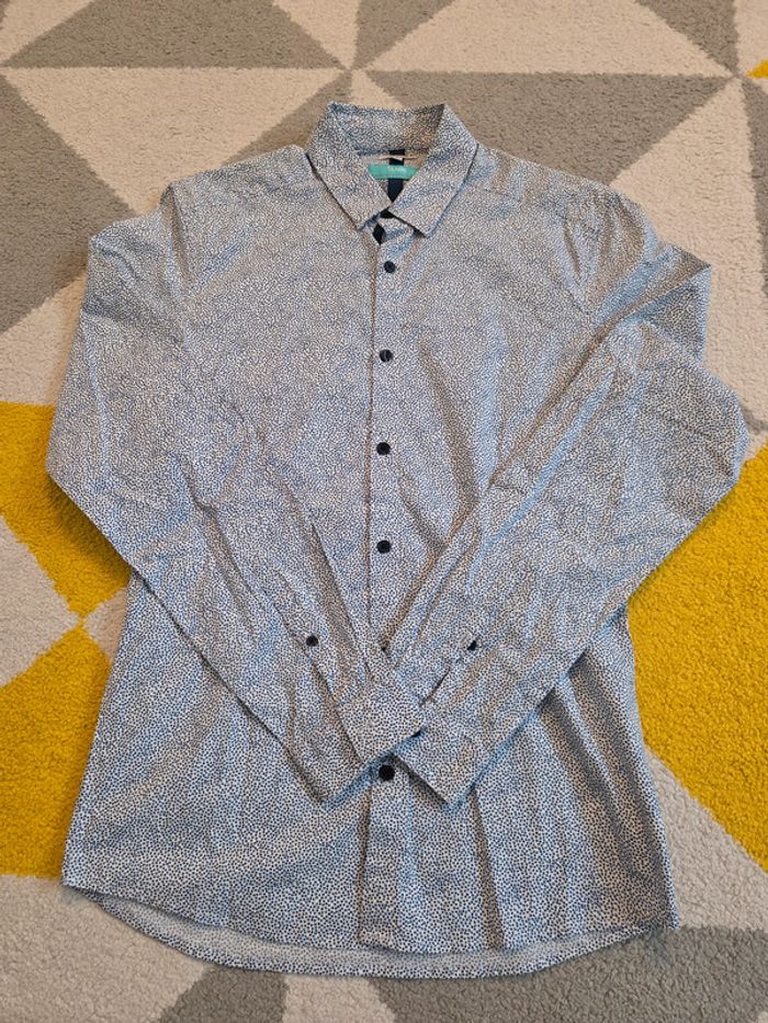 🎁 -5% de réduction pour les abonnés Chemise à motifs Jules Taille : M Couleur : Blanc, bleu et noir Matières : Voir photo étiquette État : Très bon état 💫Me contacter par message pour créer un lot : 💸 -10% dès deux articles achetés! 💸 REF. : MB020425 #chemise #motifs #jules #medium