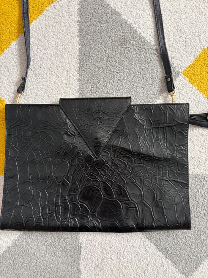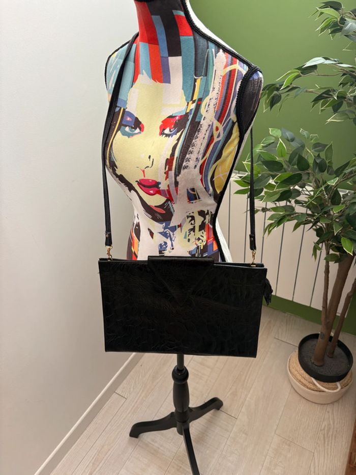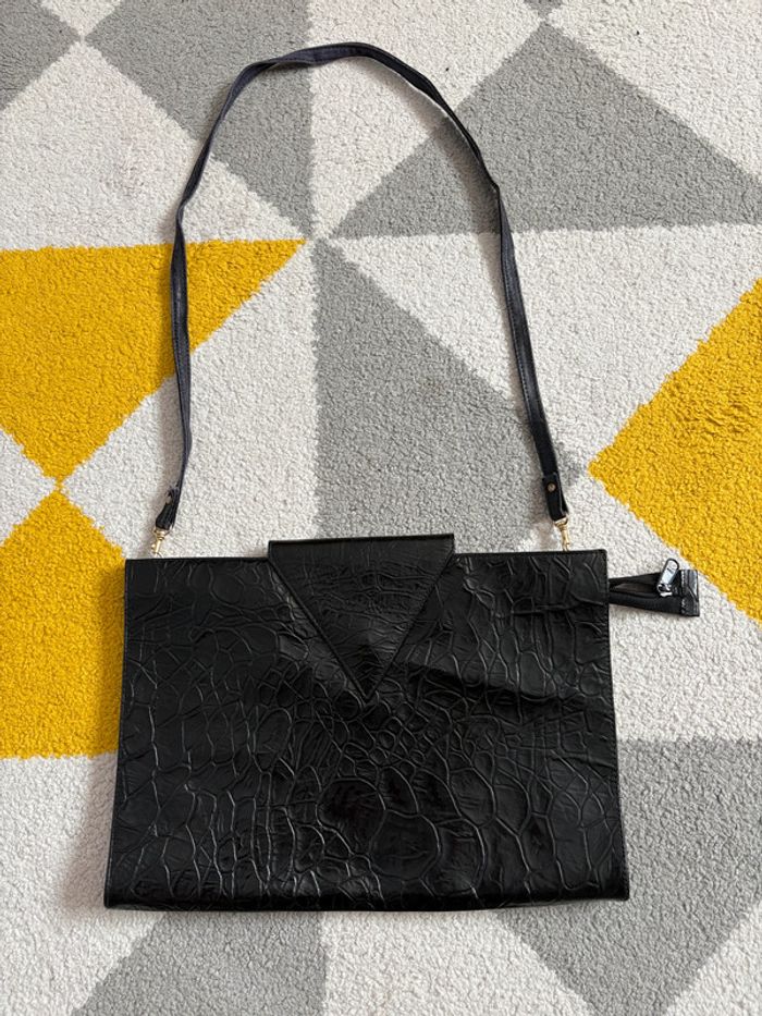 Sac en bandoulière en cuir synthétique noir vintage - photo numéro 1