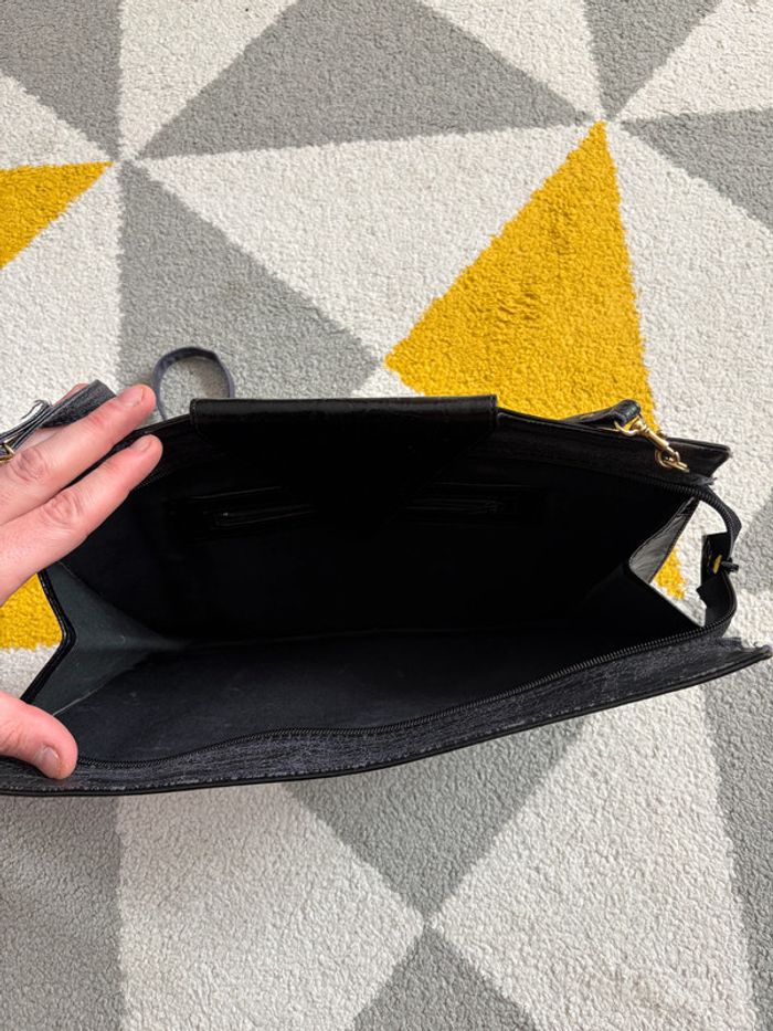 🎁 -5% de réduction pour les abonnés Sac en bandoulière en cuir synthétique Taille : Largeur : 34,5 cm - Hauteur : 23 cm Couleur : Noir Matières : Cuir synthétique État : Bon état (peut comporter quelques traces d'usures, voir photos) 💫Me contacter par message pour créer un lot : 💸 -10% dès deux articles achetés! 💸 #Sac #sacàmain #sacfemme #bag #bandouliere #pochette #vintage Réf.: P18052025