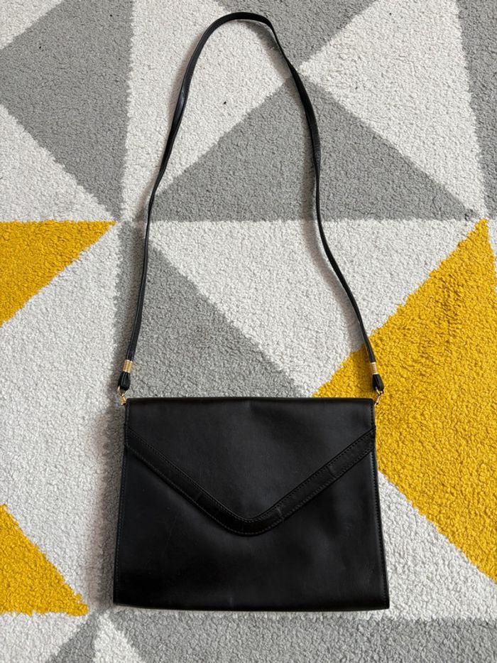 Sac en bandoulière en cuir noir vintage - photo numéro 1