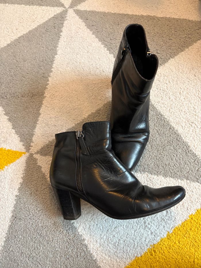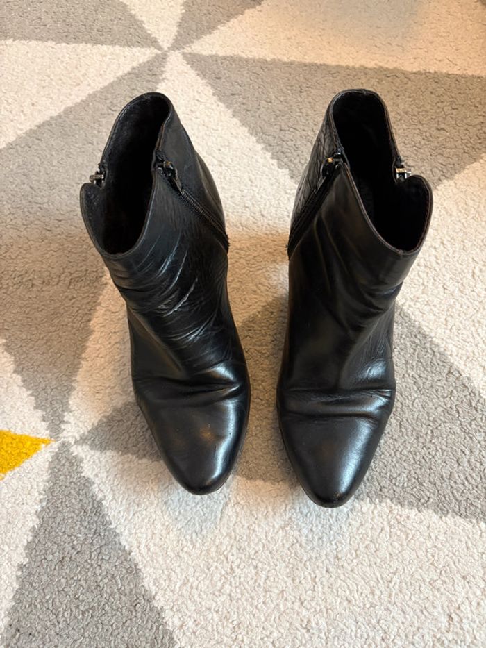 🎁 -5% de réduction pour les abonnés Bottines en cuir noir Minelli Taille : 37 - Hauteur du talon : 6 cm Couleur : Noir Matières : Cuir État : Très bon état Réf. : AA070425 💫Me contacter par message pour créer un lot : 💸 -10% dès deux articles achetés! 💸