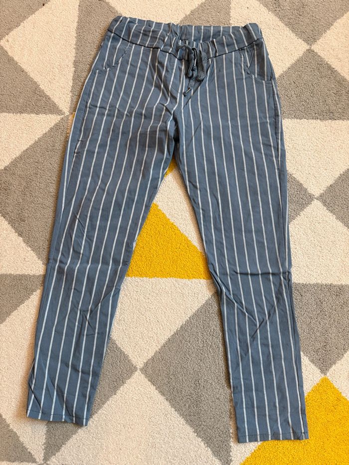 🎁 -5% de réduction pour les abonnés Pantalon décontracté Made in Italy Taille : Unique Couleur : Bleu à rayures blanches État : Très bon état Matières : Voir photos étiquettes 💫Me contacter par message pour créer un lot : 💸 -10% dès deux articles achetés! 💸 #pantalon #madeinitaly #tailleunique Réf.: AH28042025