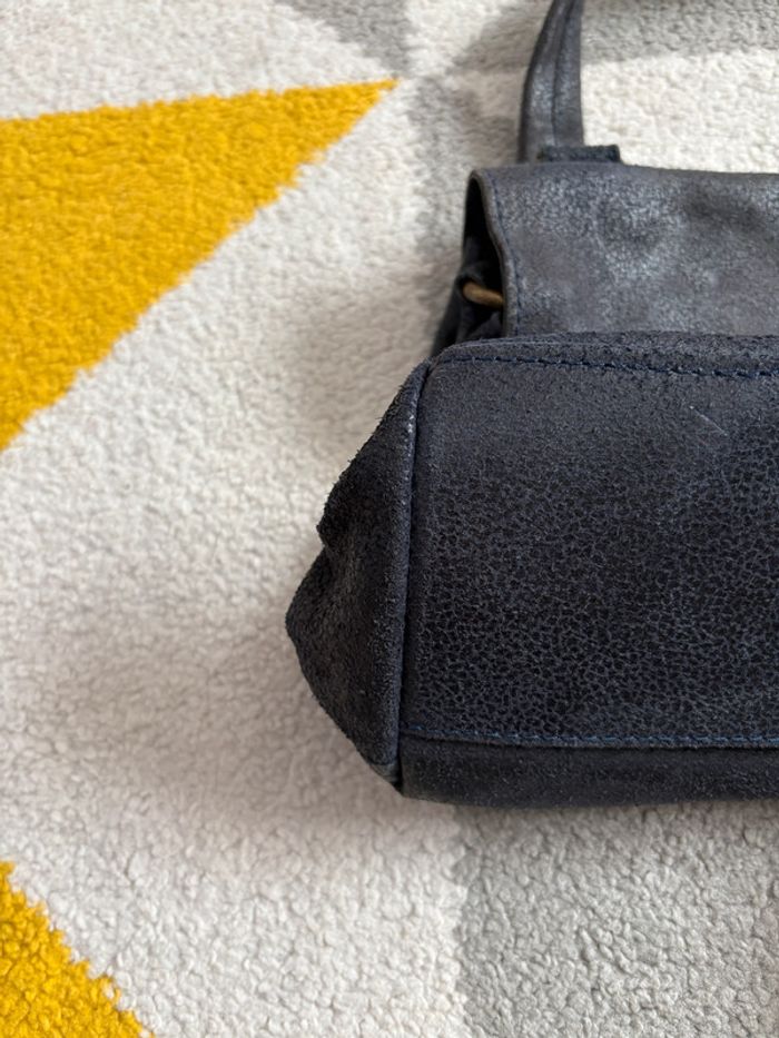 Sac à main en cuir vintage couleur bleu marine - photo numéro 7