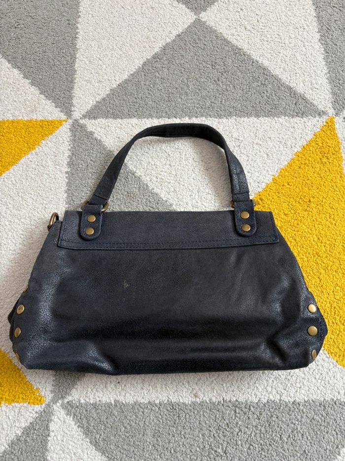 Sac à main en cuir vintage couleur bleu marine - photo numéro 2