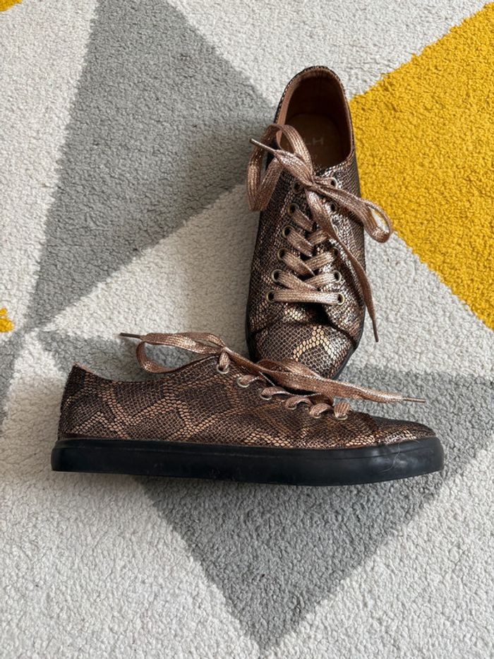 🎁 -5% de réduction pour les abonnés Basket LH Taille : 37 Couleur : Doré et noir État : Très bon état 💫Me contacter par message pour créer un lot : 💸 -10% dès deux articles achetés! 💸 #basket #LH #taille37 Réf.: FG29042025