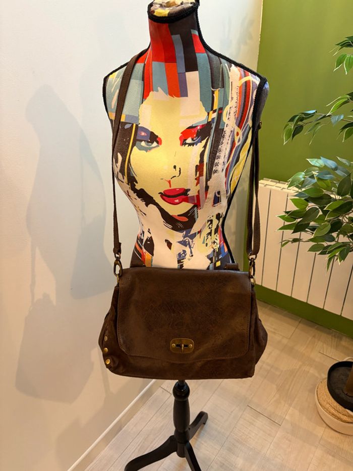 Sac à main en cuir vintage couleur marron - photo numéro 1