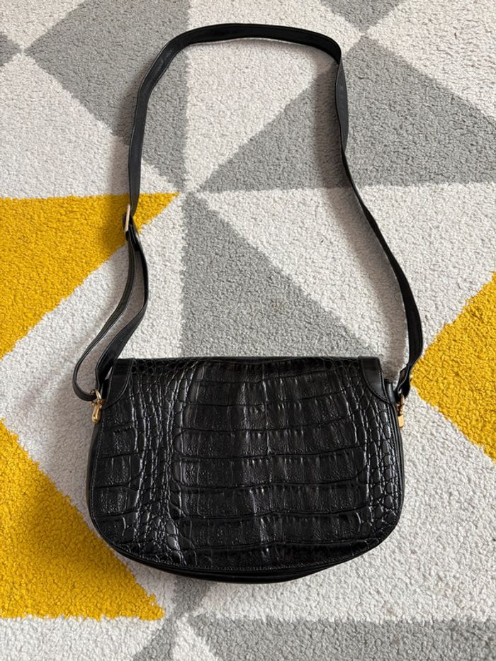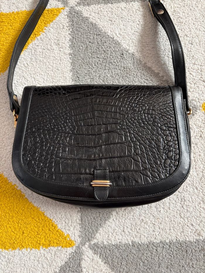 Sac à bandoulière vintage en cuir couleur noir - photo numéro 2